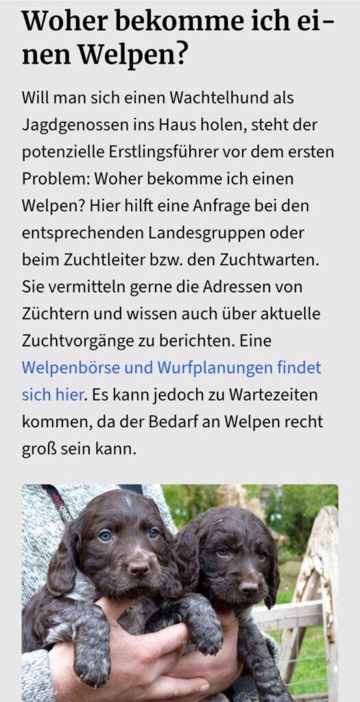 Welpeninteressierte erhalten dadurch frühzeitig Informationen zu anstehenden Zuchtvorhaben und können frühzeitig mit der Züchterin bzw. dem Züchter in Kontakt treten.